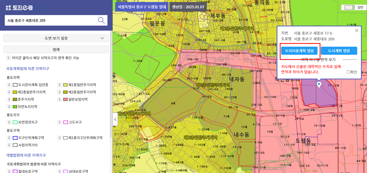 이 세 가지는 헷갈리기 쉬우니, 토지이음을 통해 확인할 때 각각 어떤 의미를 가지는지 꼭 구분해서 봐야 합니다.